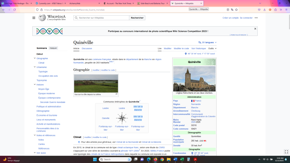 This Wikipedia page indicates the town has been in existence at least since the early 1400s, was a port used by the English during the 100 years war and was the northernmost town involved in the WWII D-Day Normandie invasion: https://fr.wikipedia.org/wiki/Quin%C3%A9ville#Seconde_Guerre_mondiale