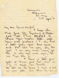 The quest to find and visit the ‘old sod’ reaches back to 1925 when my great- great-grandmother Margaret Lally Hynes sent a letter to Grandma Margaret Manley about the local news in Derrymore, Hollymount, County Mayo, Ireland. The letter on this page was sent from the now closed Post Office which is in the middle of the main street in Claremorris. The unrestored part of the office shows what it might have looked like if Margaret went there to post the letter herself. Click on each page of the letter to enlarge the text.