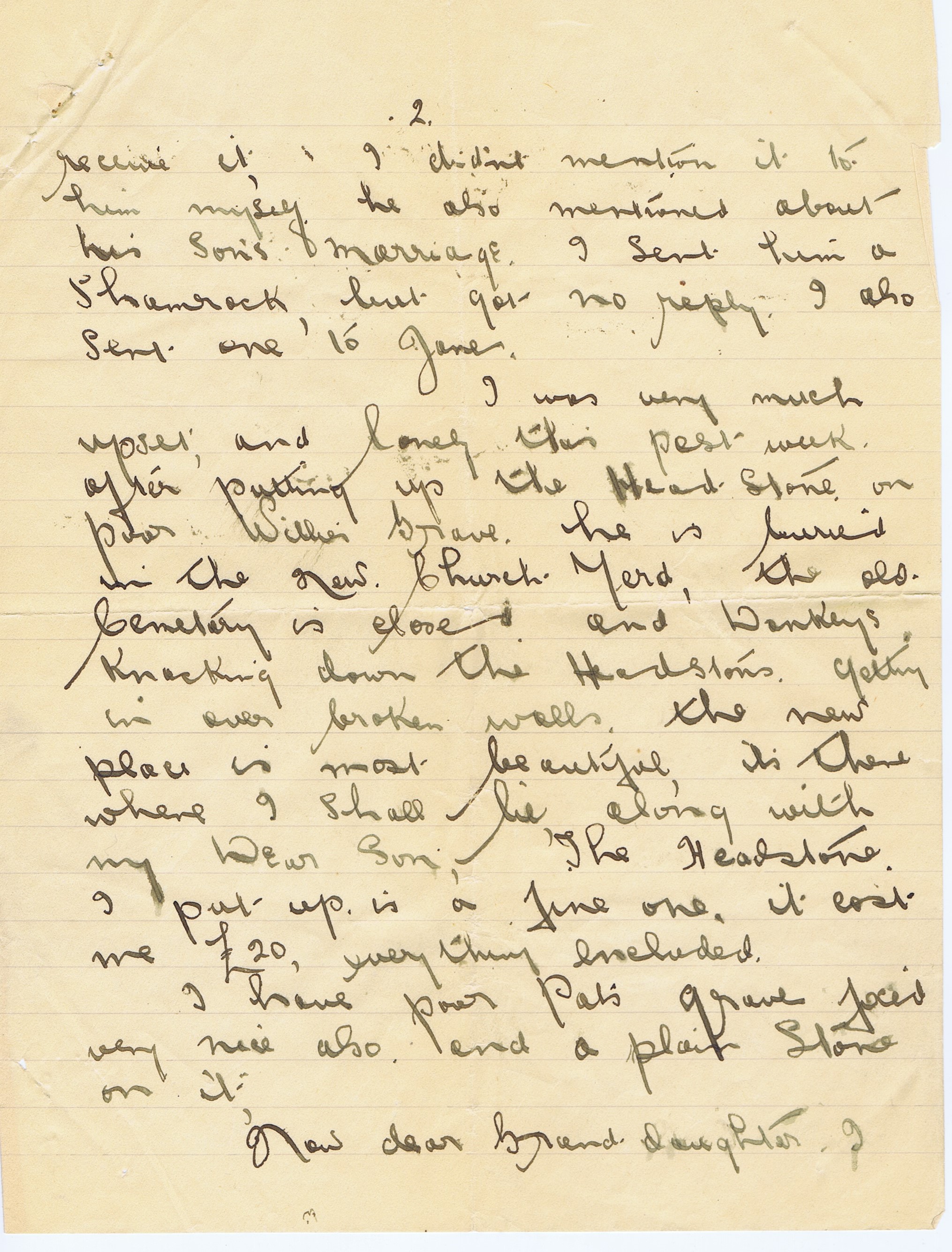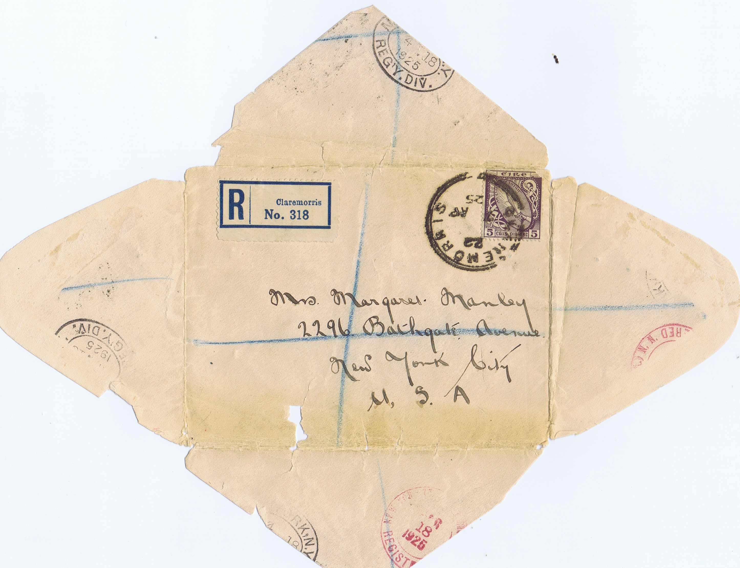 The quest to find and visit the ‘old sod’ reaches back to 1925 when my great- great-grandmother Margaret Lally Hynes sent a letter to Grandma Margaret Manley about the local news in Derrymore, Hollymount, County Mayo, Ireland. The letter on this page was sent from the now closed Post Office which is in the middle of the main street in Claremorris. The unrestored part of the office shows what it might have looked like if Margaret went there to post the letter herself. Click on each page of the letter to enlarge the text.